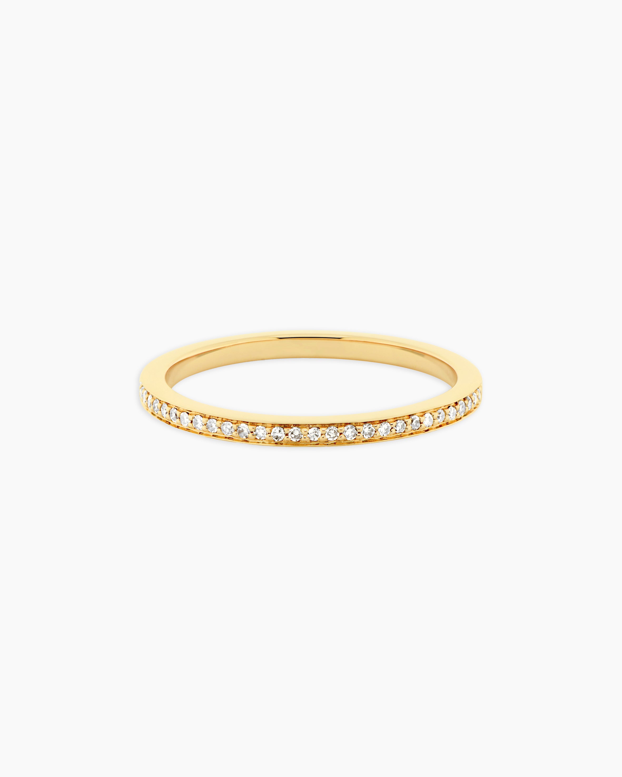 This solid gold band has been pavé-set with natural diamonds for a touch of shine, helping you to make a statement without waiting for an occasion. Deck out your digits on the daily with the Barbara Diamond Ring.