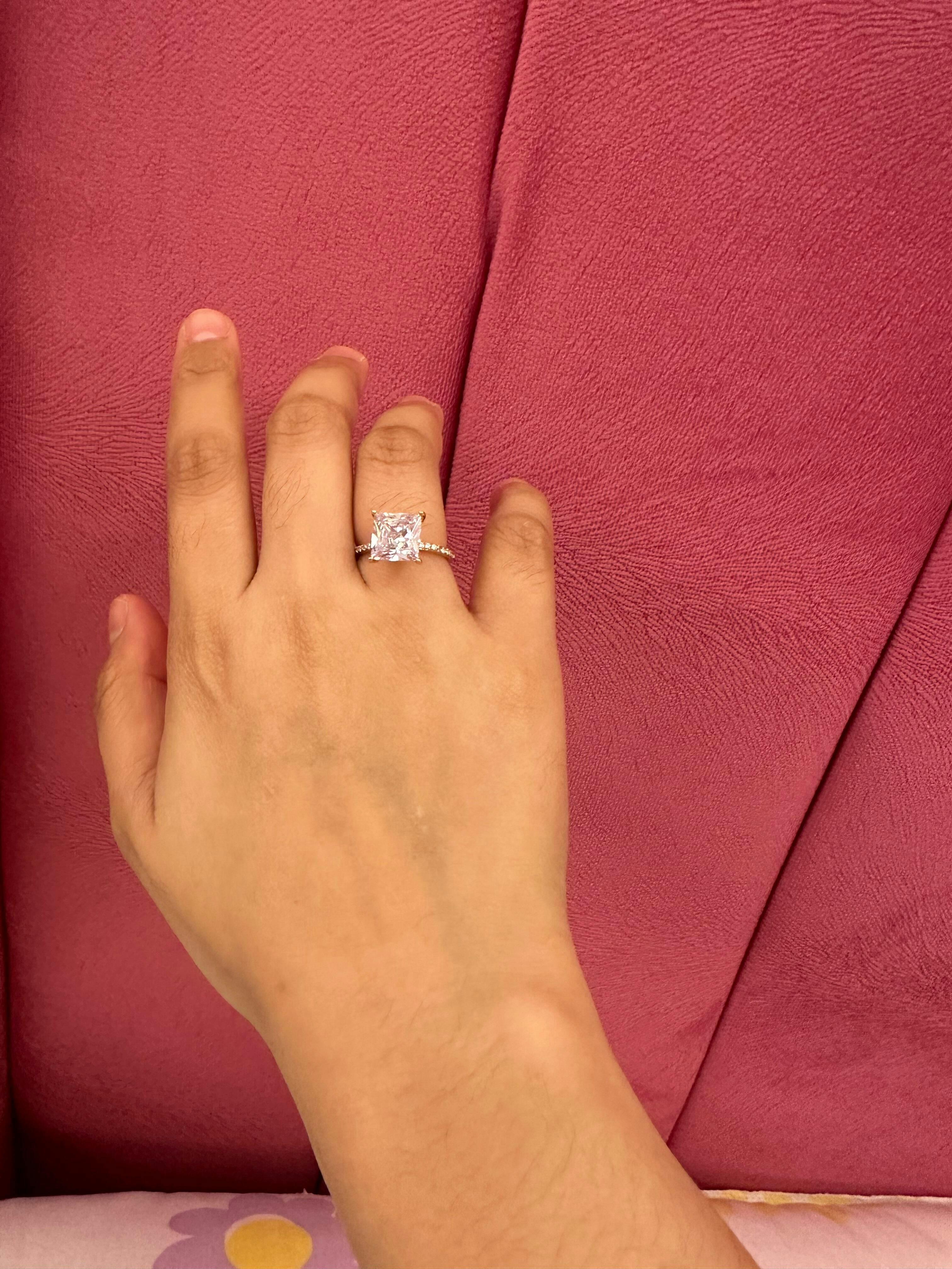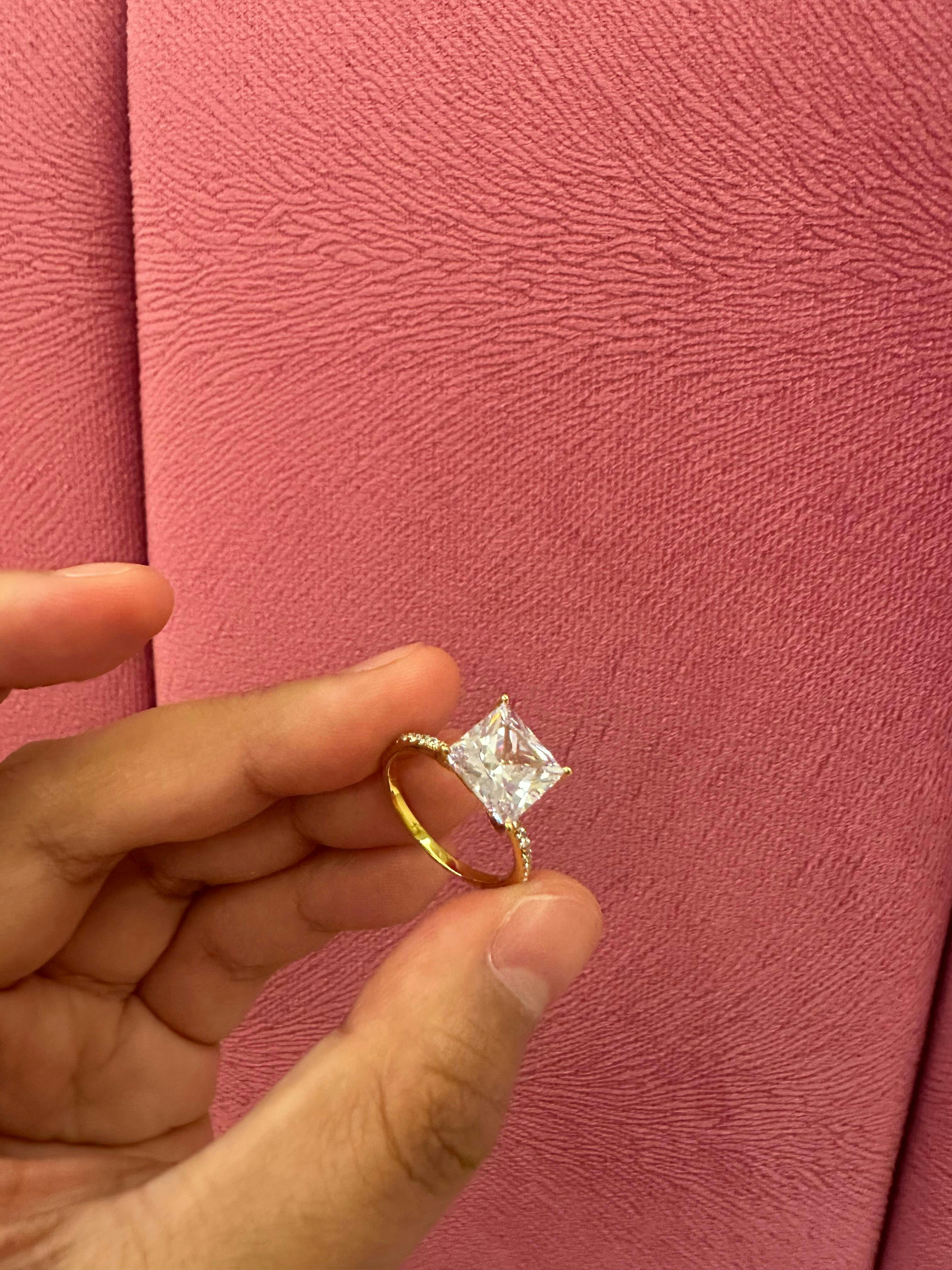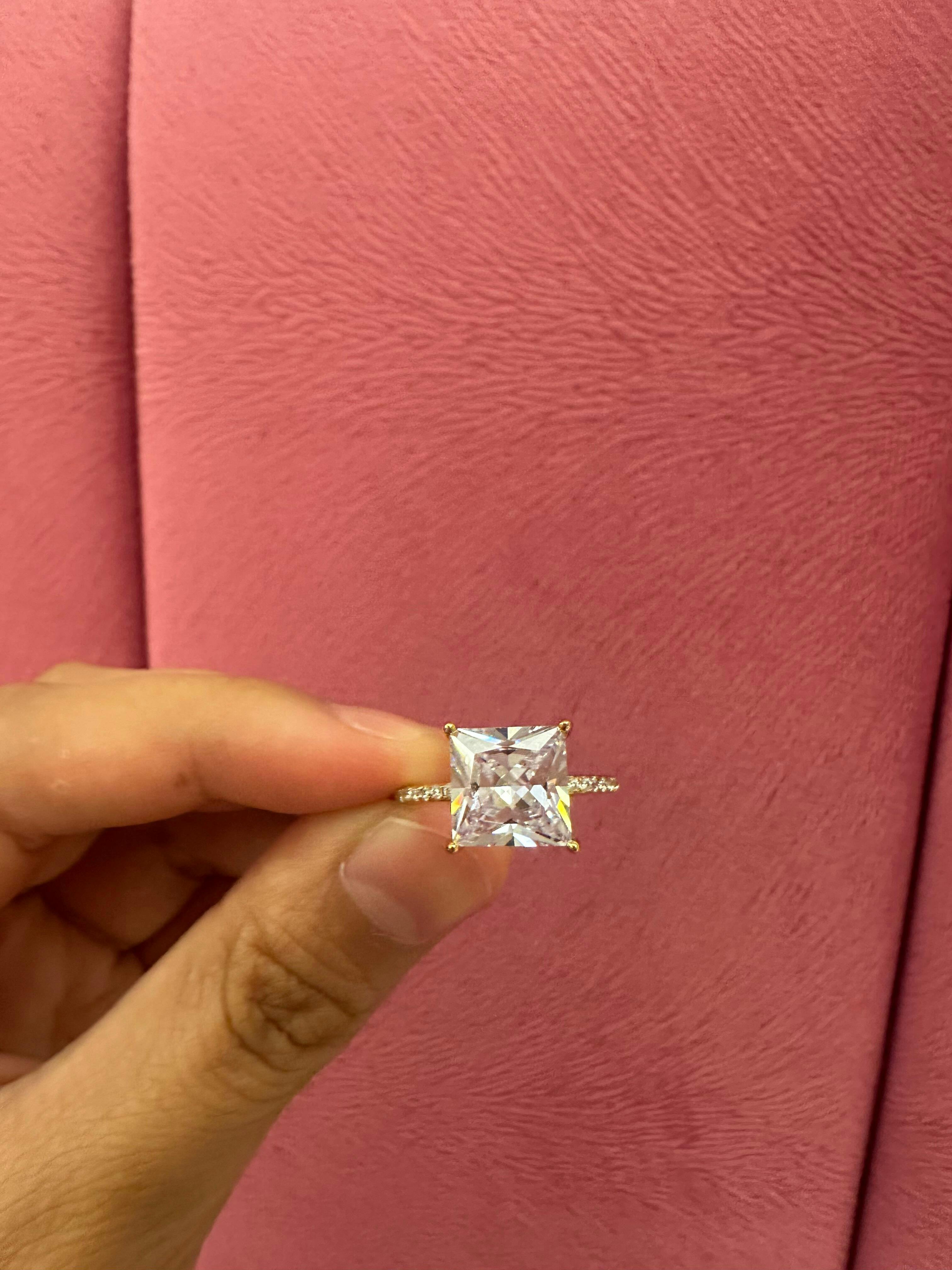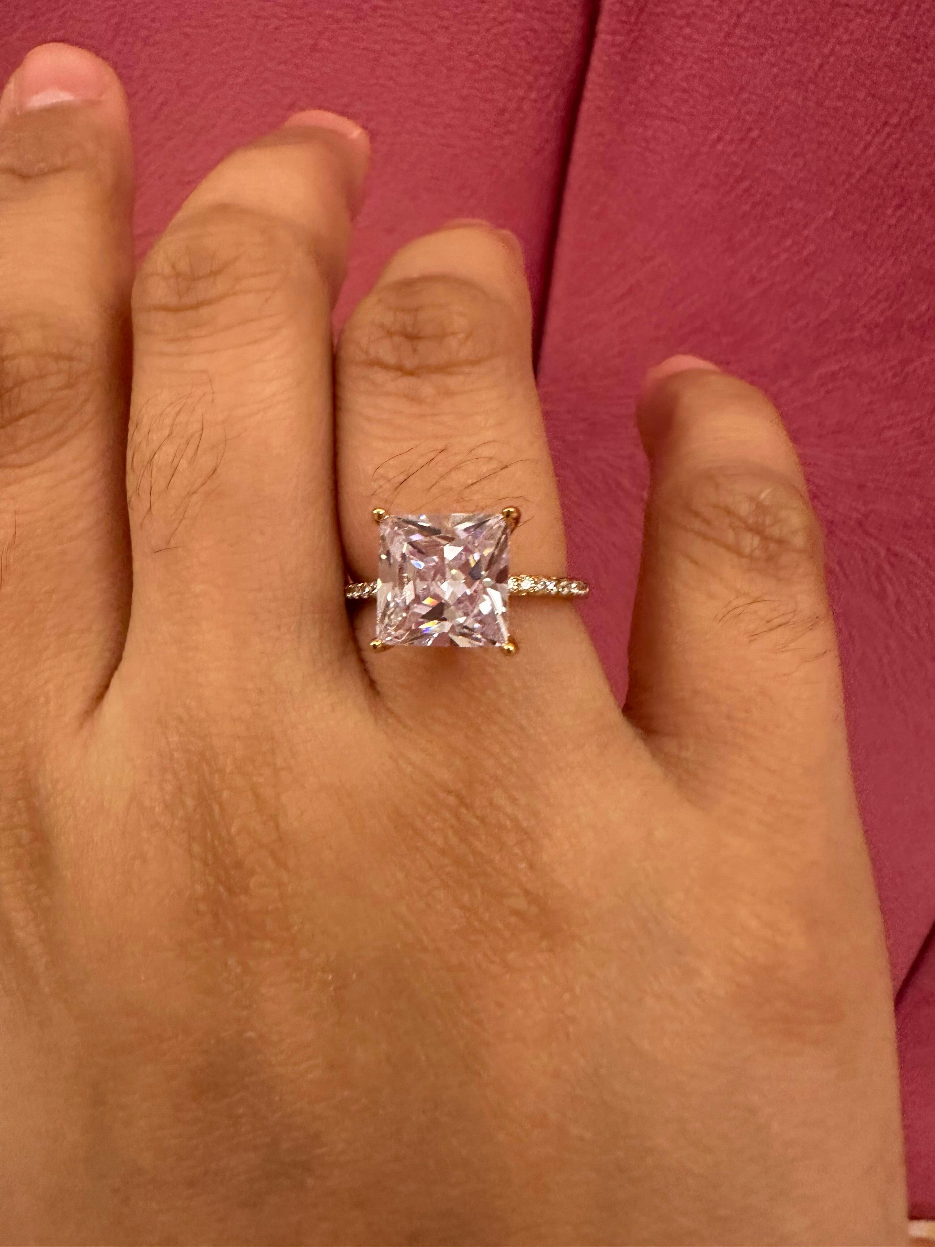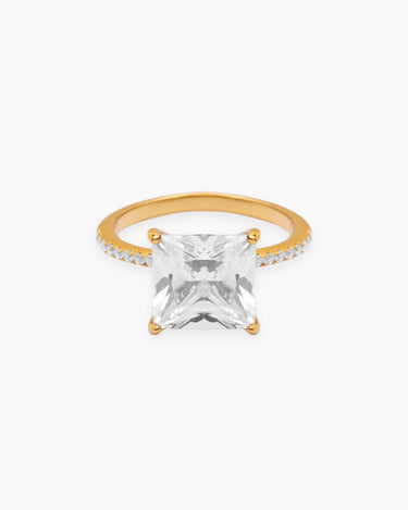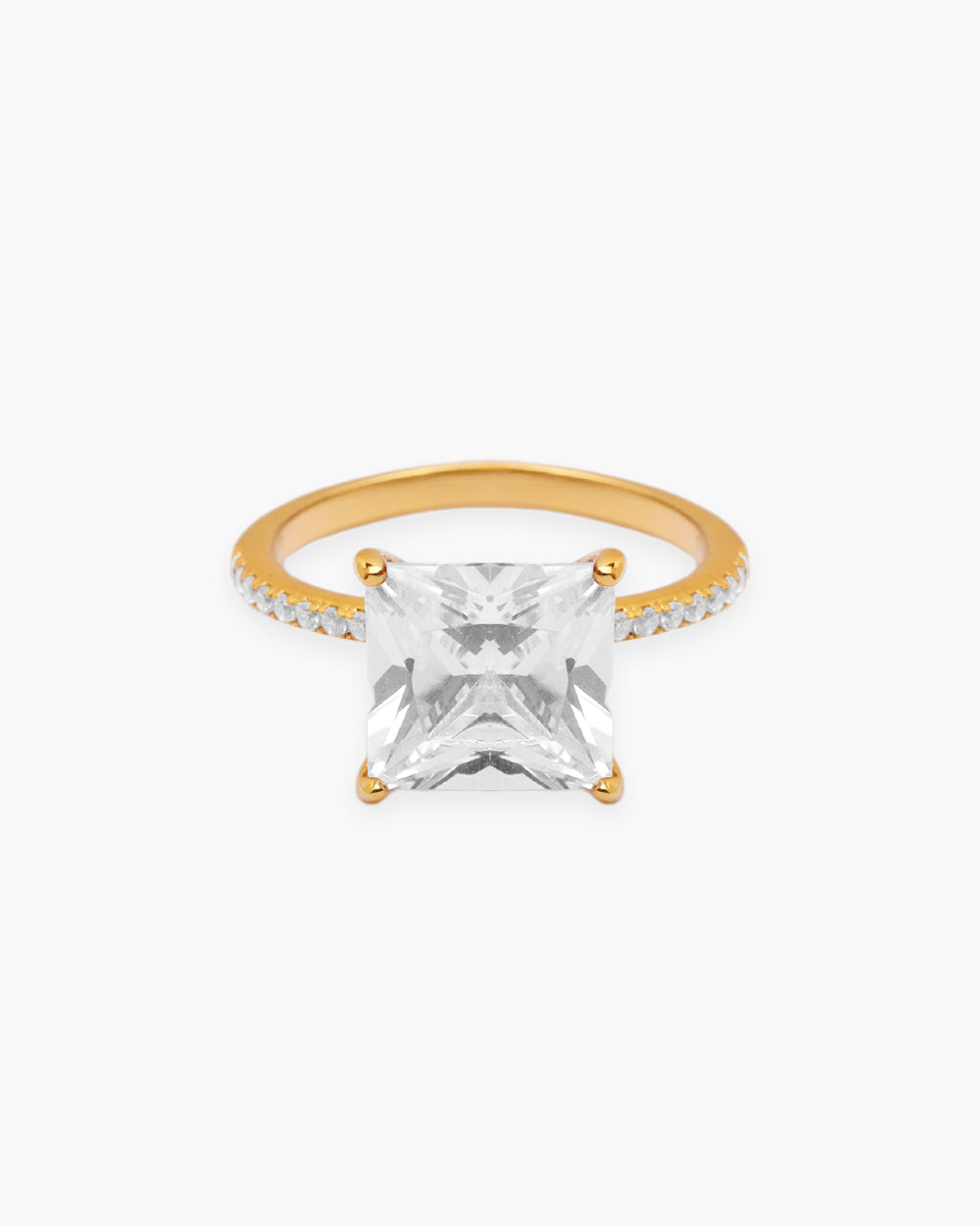 A ring fit for a princess? Meet the Bridget Gold Ring. Starring a large princess-cut stone on a pavé halo, this statement-making silhouette is here to make you look and feel like royalty.