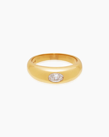 Ready to radiate main character energy? Molded with a softly rounded dome top and a flush-set Cubic Zirconia stone for maximum impact, this piece will have you feeling like the world is yours. So go ahead, flip the script, and allow the Crystal Dome Gold Ring to do all the talking for you.