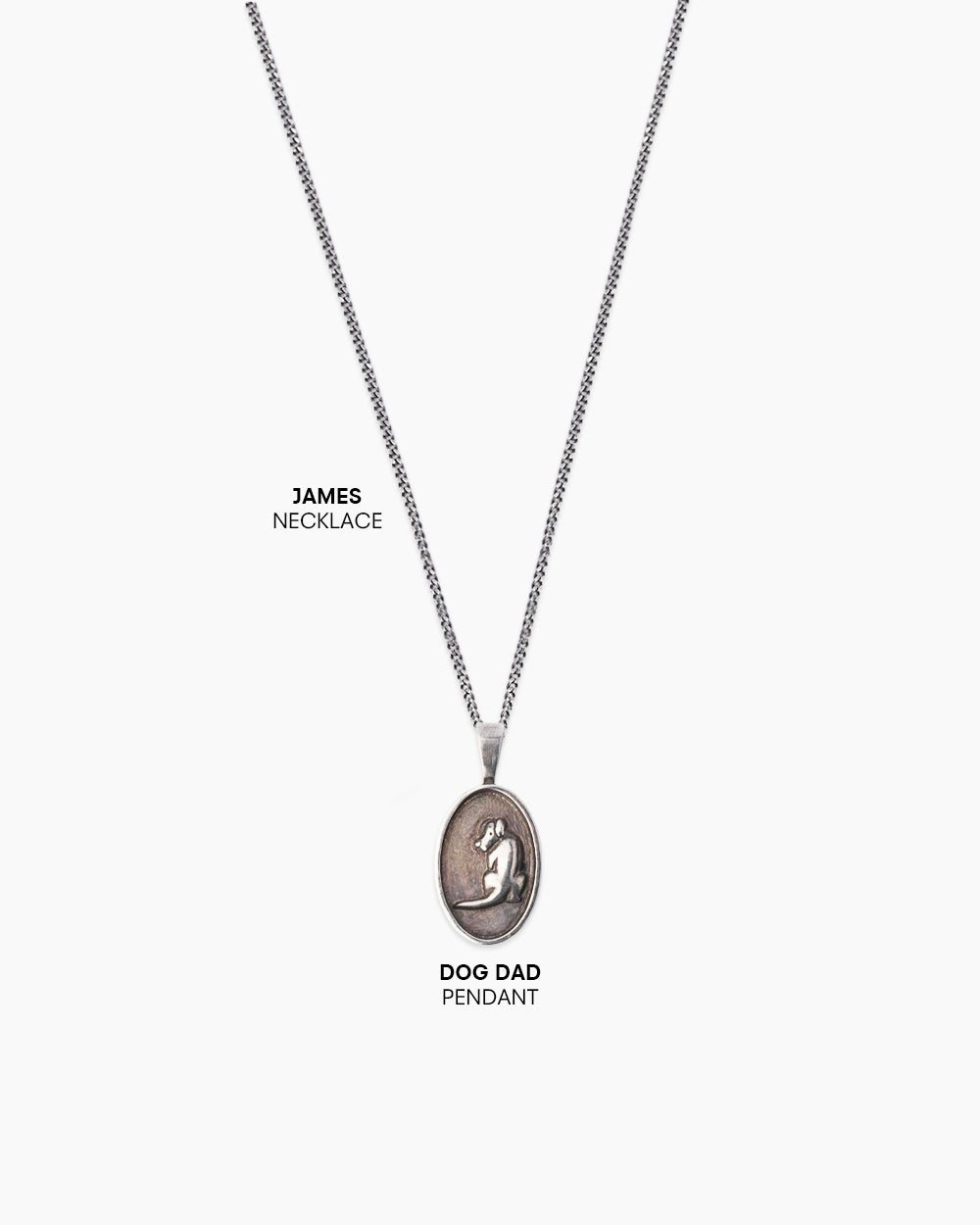 The Dog Dad Silver Pendant features an engraved dog charm, a perfect way to celebrate the special bond with a beloved canine companion. Featuring a rugged, oxidized finish, this 15mm silver pendant is a heartfelt tribute to dog dads everywhere.