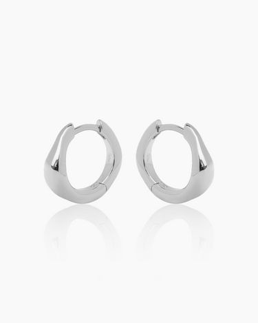 The Jean Silver Huggies offer a slimmer, elongated fluid shape. These light-catching huggies have a delicate yet dimensional silhouette, perfect for a refined and modern everyday look.