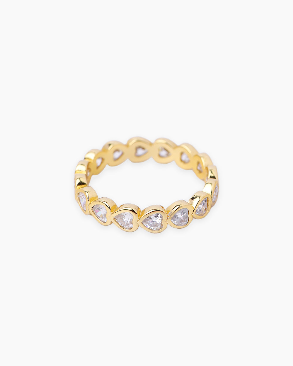 Wanna spark a gem-infused romance? Do it in style with the Jenna Ring. This stackable gold band will allow you or your loved one to carry a string of hearts around, turning every day into a love affair.