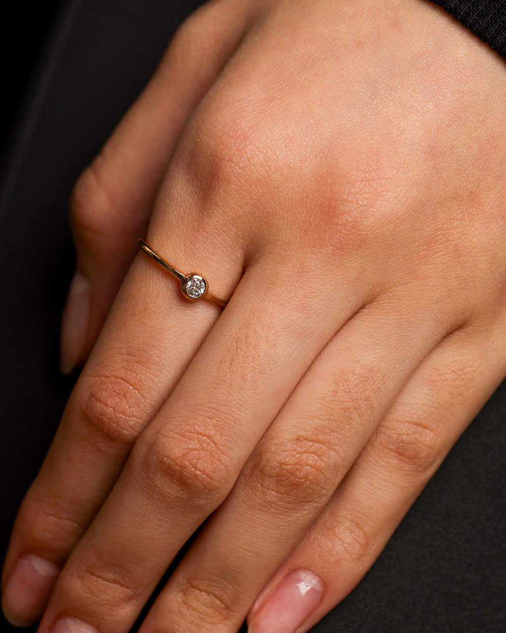 The Liliana Lab Grown Diamond Gold Ring is a timeless and elegant piece featuring a single, round lab-grown diamond set in a minimalist bezel setting. A simple yet classic silhouette, this delicate piece is set to add a touch of luxury to your looks.