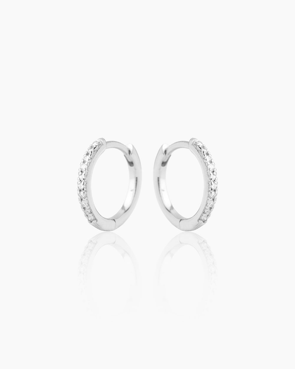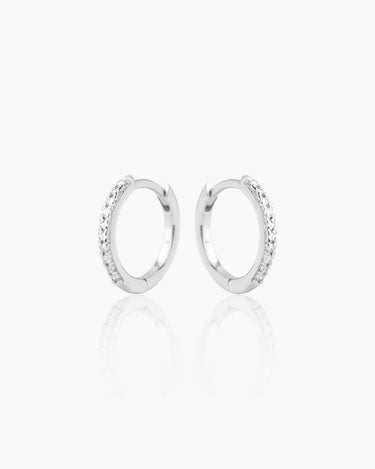 The Lina Lab Grown Diamond Silver Huggies are delicate and chic small hoop earrings. Featuring a pave setting of sparkling lab-grown diamonds, these huggies add a touch of everyday brilliance. Their slim profile makes them ideal for comfortable, all-day wear and effortless layering.