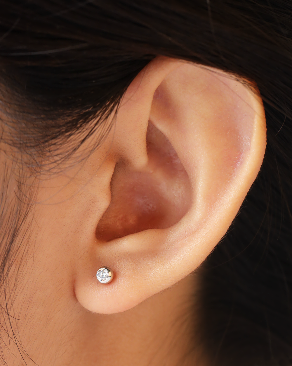 Featuring a threadless design, just push to secure and pull to remove for easy, effortless stacking. Plus, all our flatback studs are made with implant grade titanium, providing ultimate comfort during healing and everyday wear.