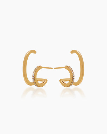 Want a multi-earring stack without having to get more piercings? A design like no other, this one-of-a-kind pair gives off the appearance of wearing both a sleek gold hoop and a huggie pavé-set with Cubic Zirconia. Take a single piercing to the next level with the Megan Gold Huggies.