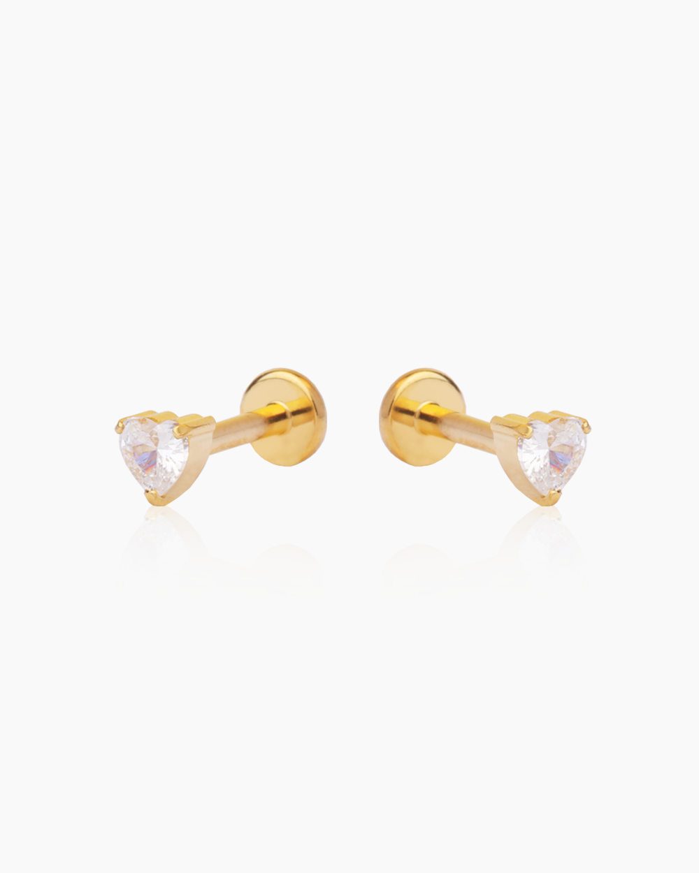 The Nic Flatback Studs feature a dazzling heart-shaped cubic zirconia stone, secured with a comfortable flatback post. This romantic and eye-catching stud is perfect for expressing a little love and is comfortable for all-day wear in any piercing. Available in both gold and silver finishes.