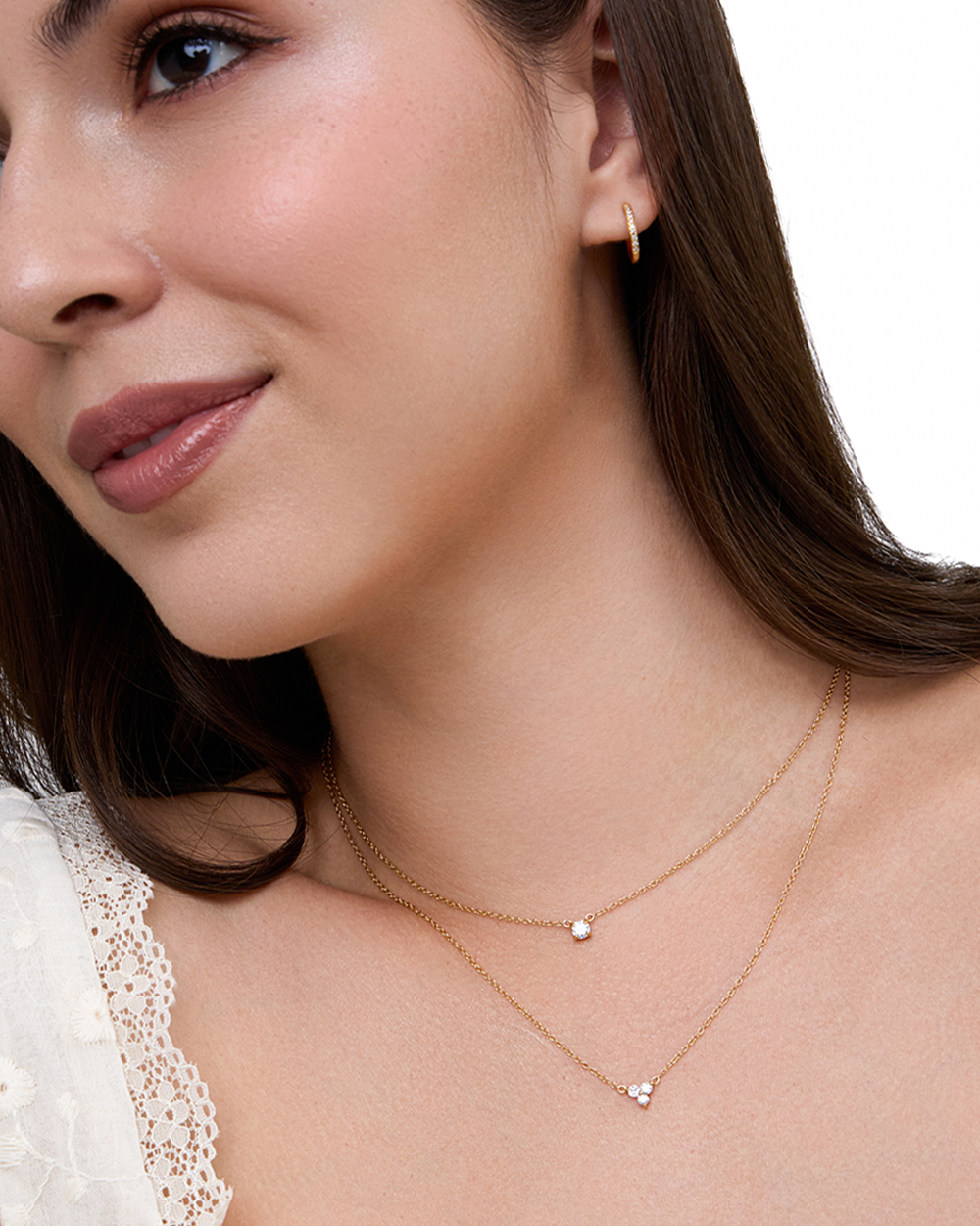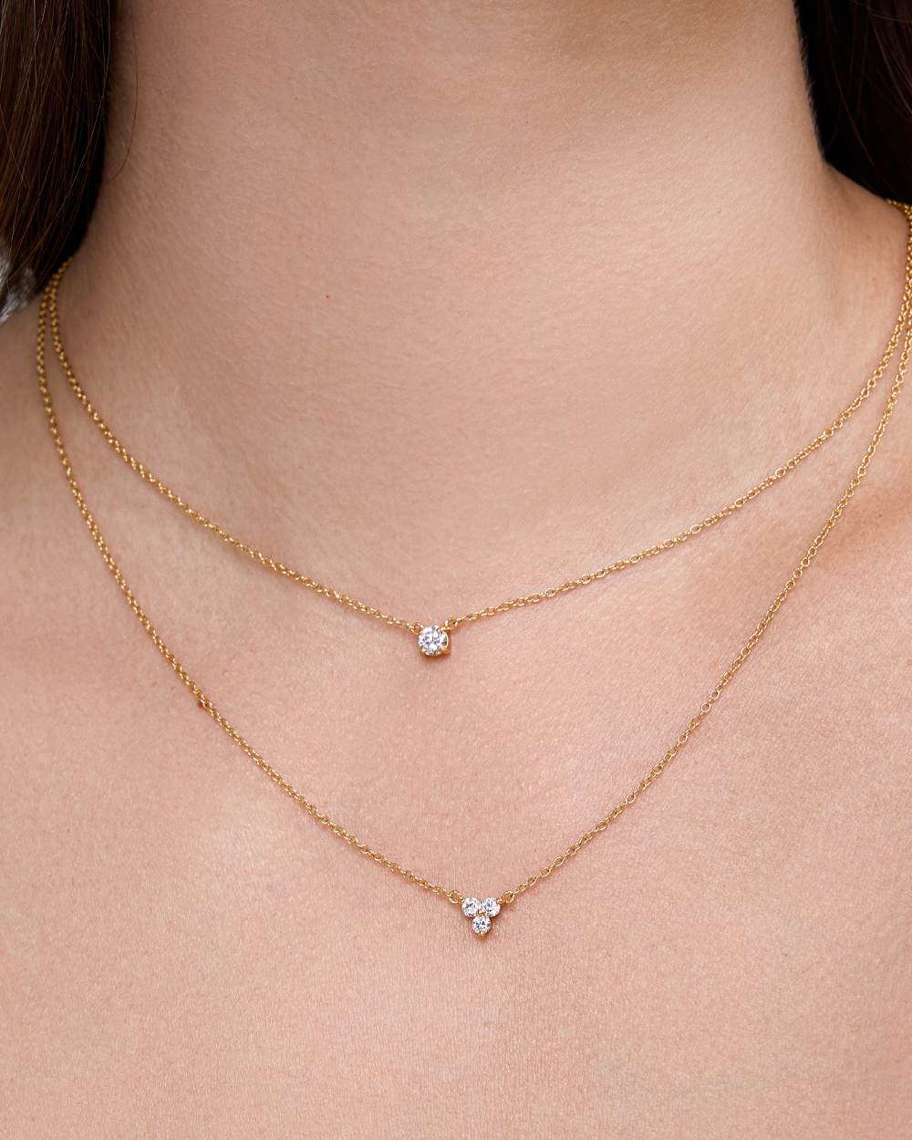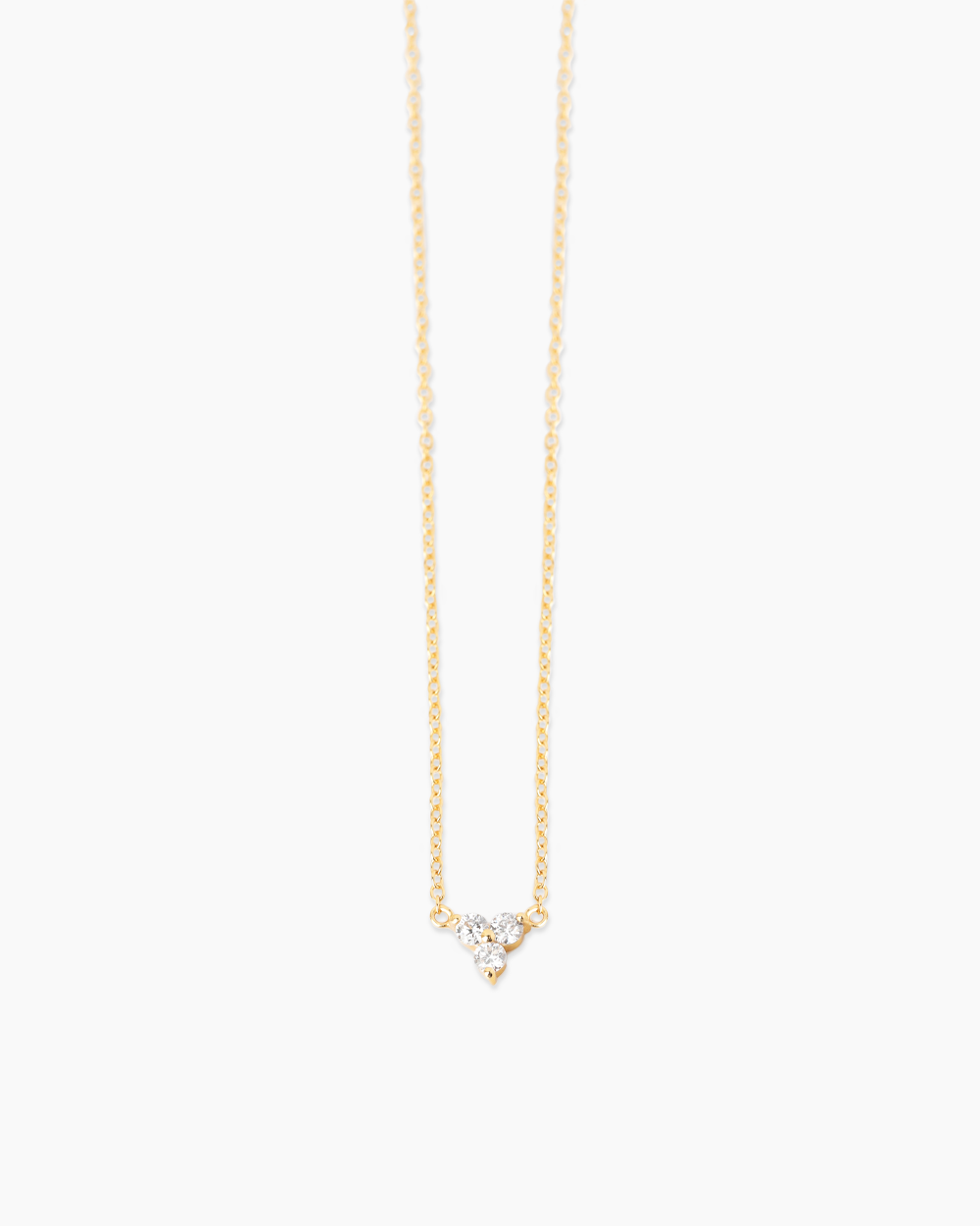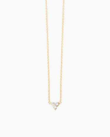 The Therese Lab Grown Diamond Gold Necklace is a delicate and charming necklace featuring a dainty cluster of three sparkling lab-grown diamonds suspended from a gold chain, adding a subtle yet radiant sparkle to your neckline.