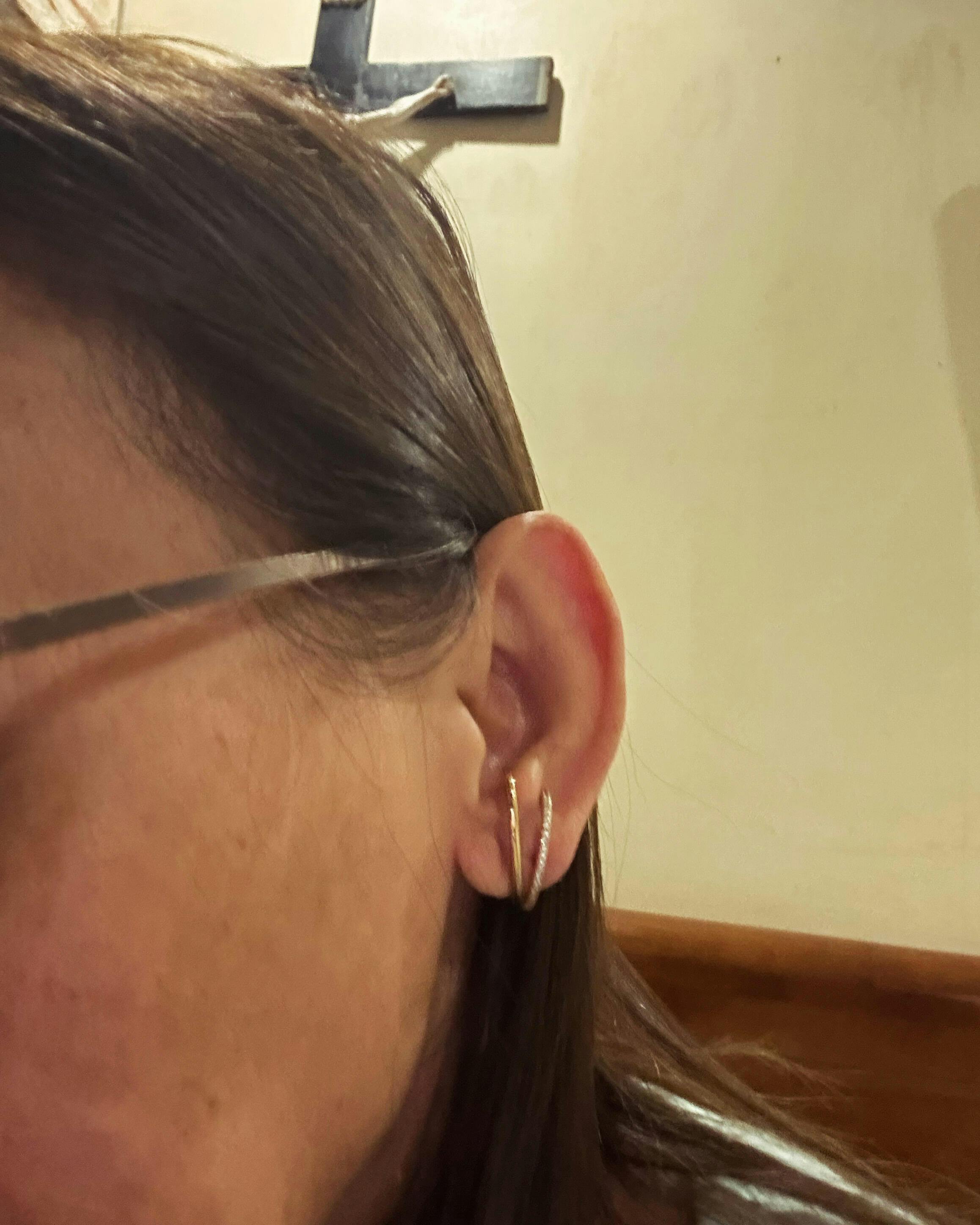 The Vanessa Gold Huggies promise to be different from anything you’ve worn. This next-level illusion design offers a modern style that is truly stunning. Double the fun, double the shine, only one piercing required.