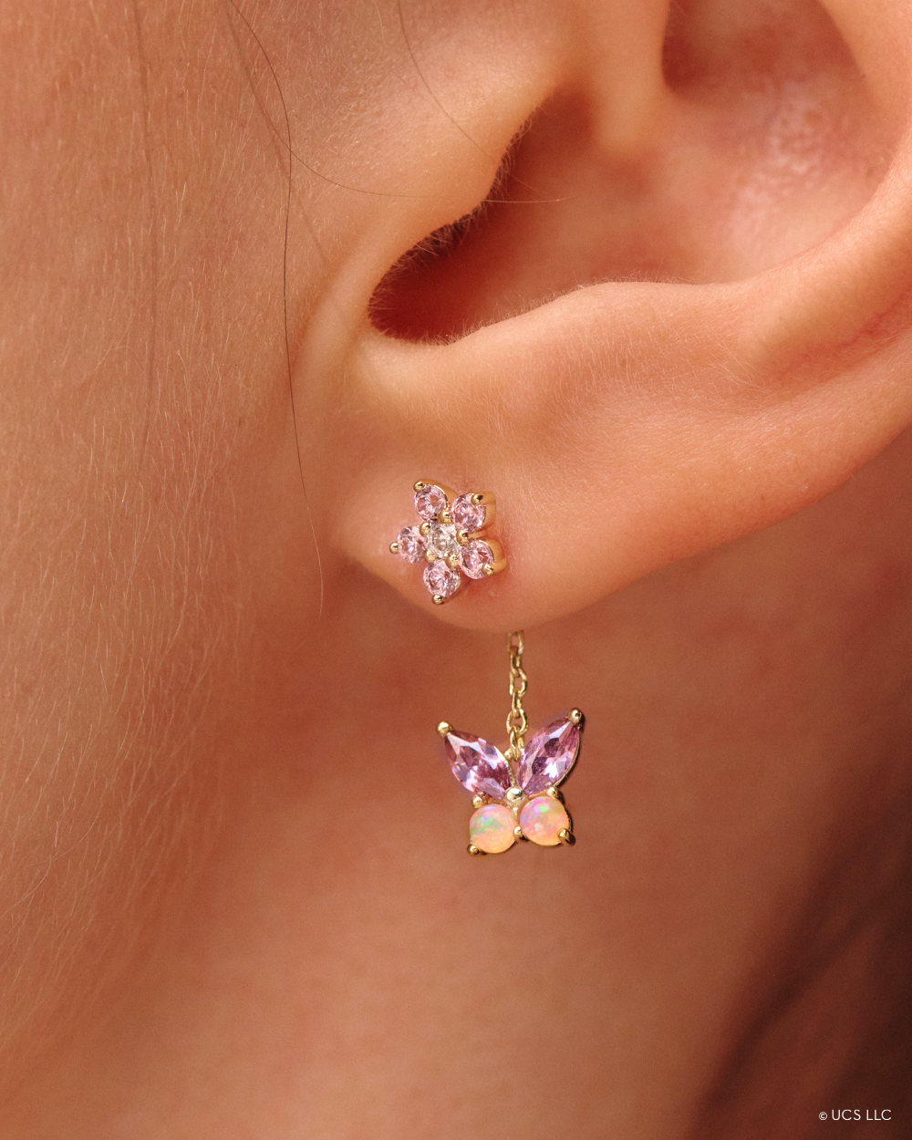 Add a touch of whimsical magic to your favorite hoop or chain. This gold dangle charm features a detailed butterfly, sparkling with a pink cubic zirconia inlay. It’s a perfect, versatile accent for anyone ready to take flight into a new look.