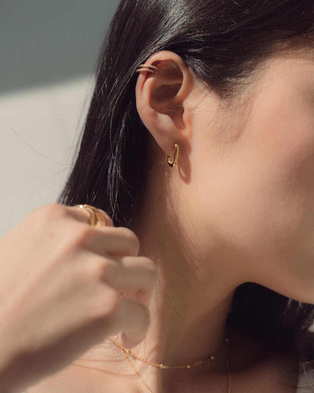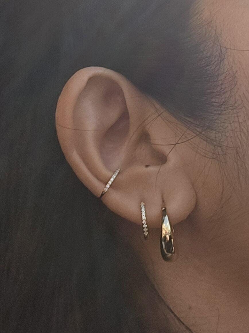 Add some sparkle to your outfit with the Zoe Pave Cuffs. Paved with cubic zirconia stones, these frosted cuffs are a great addition to your ear stack. No need for a piercing, simply clip them on.
